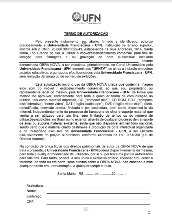 A Autorização de Uso de imóvel é a autorização assinada pelo proprietário autorizando o uso de imóvel para a produção de obra audiovisual.