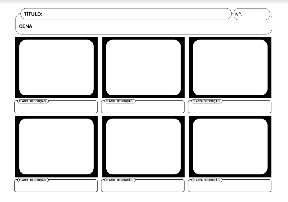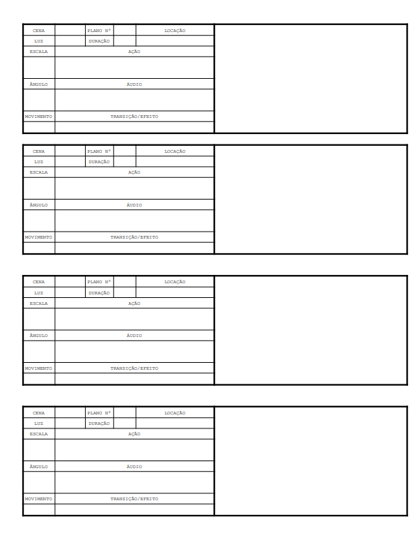 A Ficha de Storyboard é utilizada para o desenho dos planos e sequencias na decupagem do roteriro, ou rascunho da storyboard no Set durante a produção.
