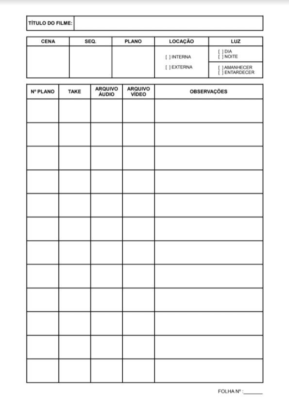 A Ficha de continuidade é o documento utilizado pelo(a) Continuísta para fazer anotações que serão essenciais para manter a continuidade do audiovisual.